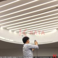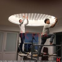 Bắn hệ thống thanh xương profile và vách tường thạch cao trước khi hoàn thiện tấm trần xuyên sáng